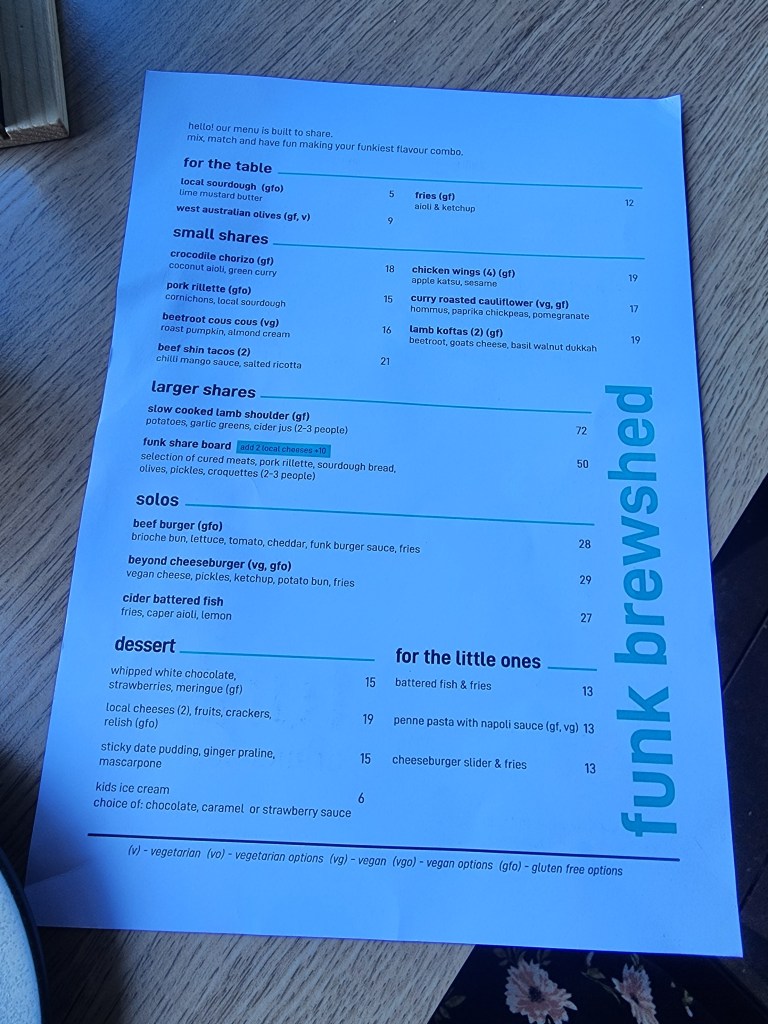 Like most breweries in Perth, bookings are a must at Funk. We were seated outside, and it was a perfect spot overlooking the playground.